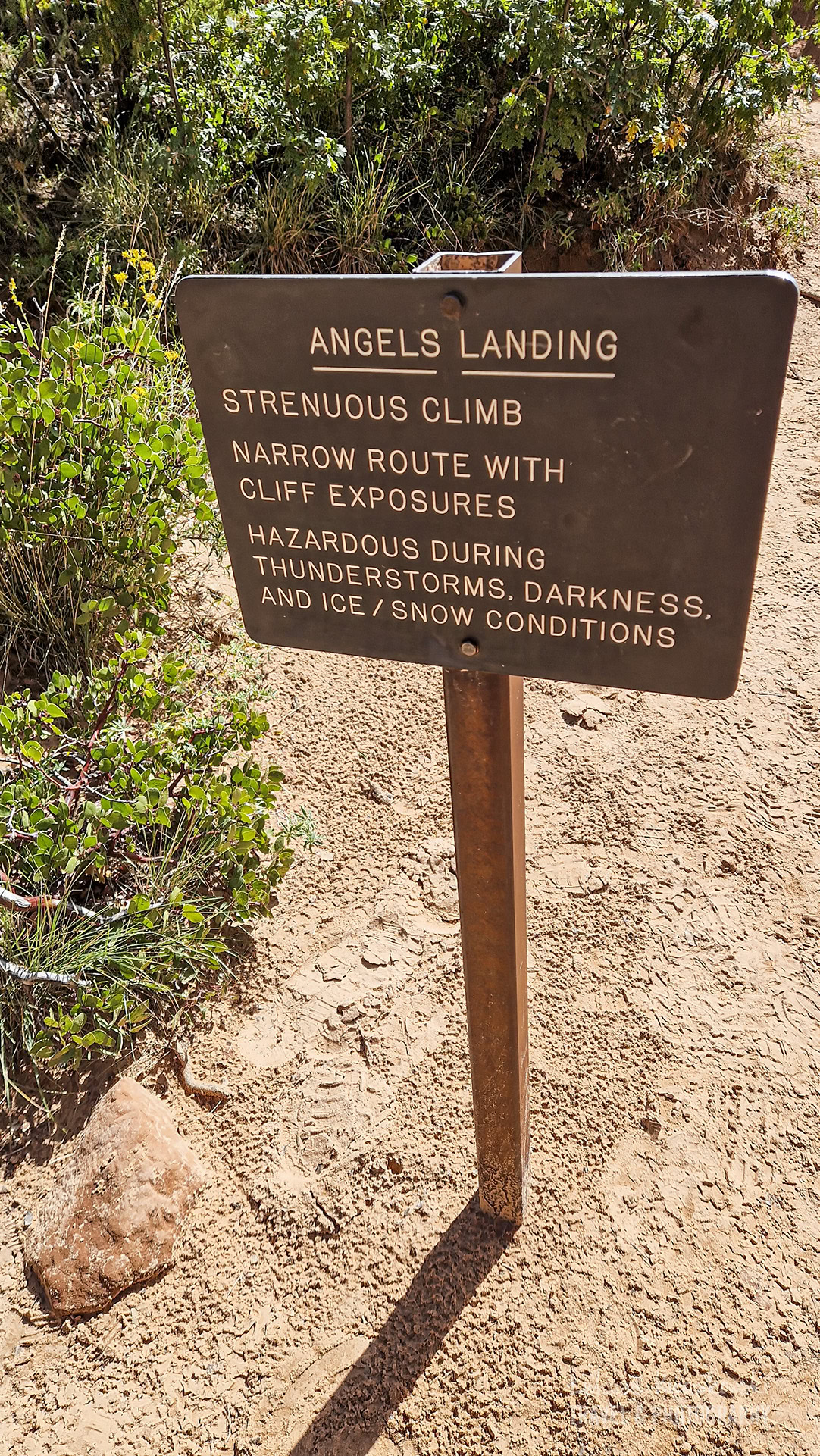 Czas przejścia to średnio 4–5 godzin (tam i z powrotem). Na Angels Landing podstawa to dobre buty trekkingowe, odpowiednia ilość wody, nakrycie głowy i ochrona przeciwsłoneczna.