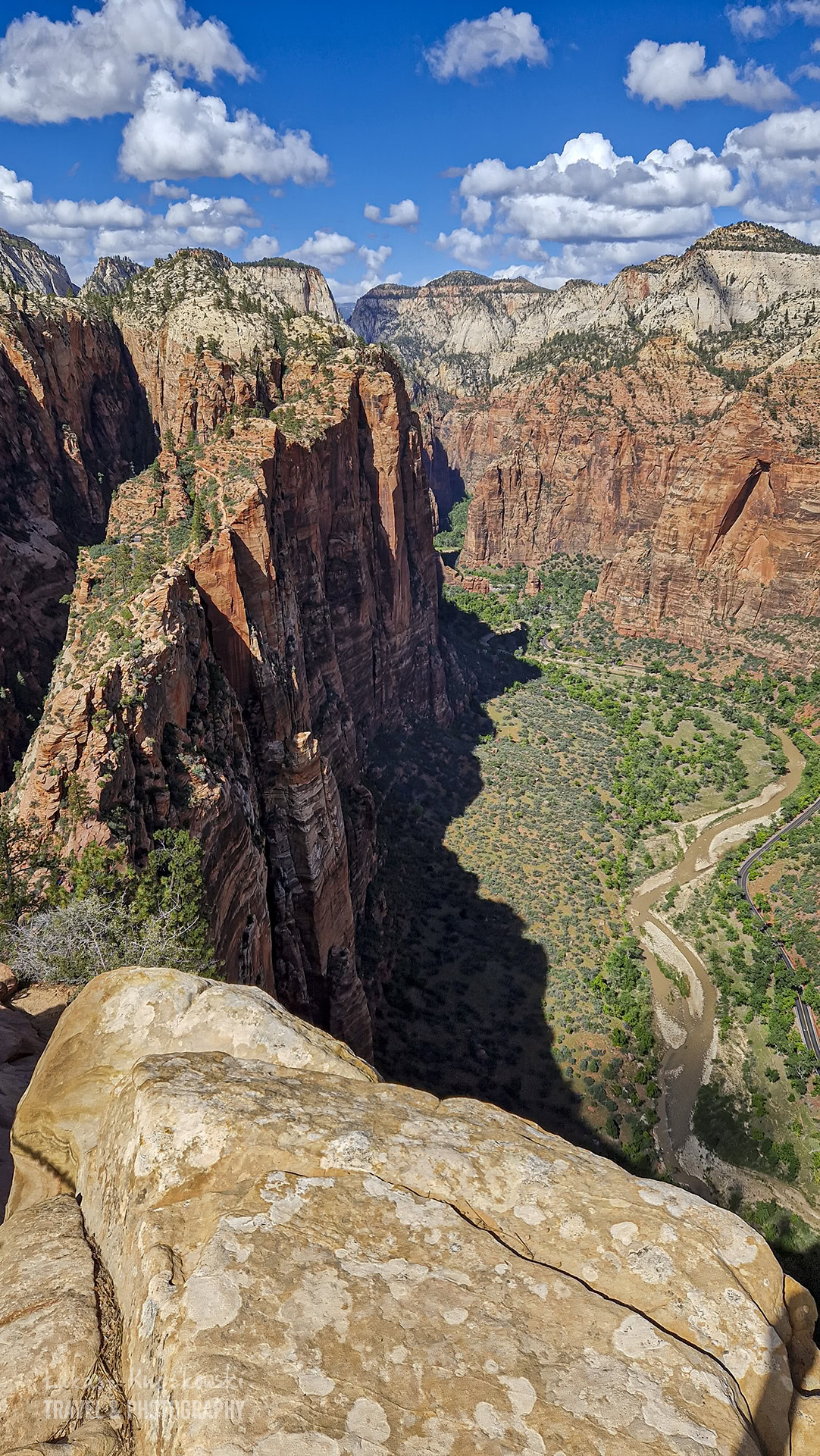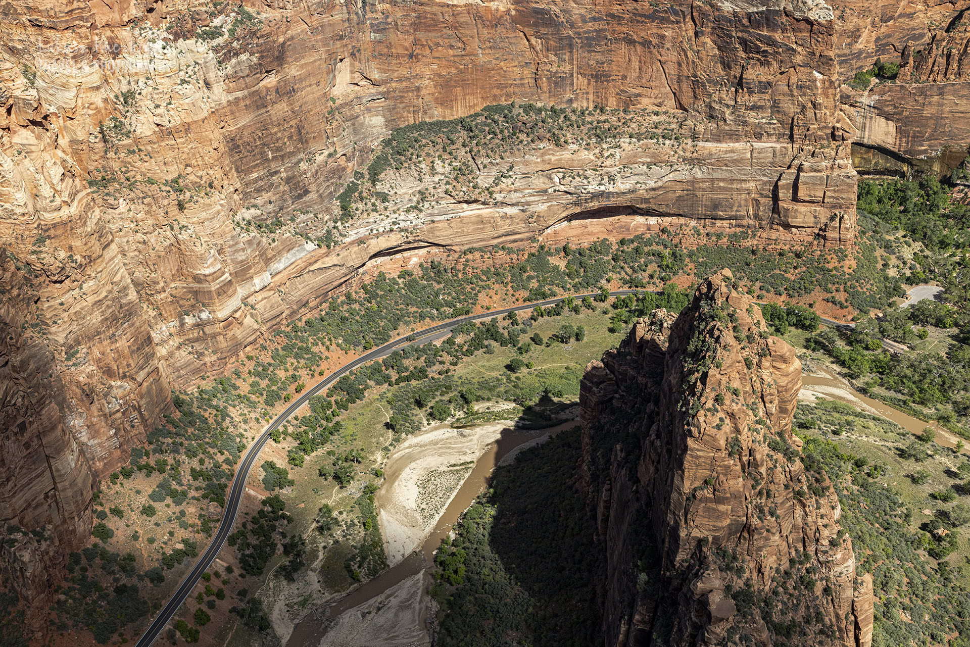 Nagrodą za wysiłek jest jeden z najbardziej spektakularnych widoków w Stanach Zjednoczonych. Ze szczytu Angels Landing rozciąga się panorama na kanion Zion, w którym czerwone ściany skalne kontrastują z zielenią bujnej roślinności i meandrującą rzeką Virgin River. Można się zachwycić.