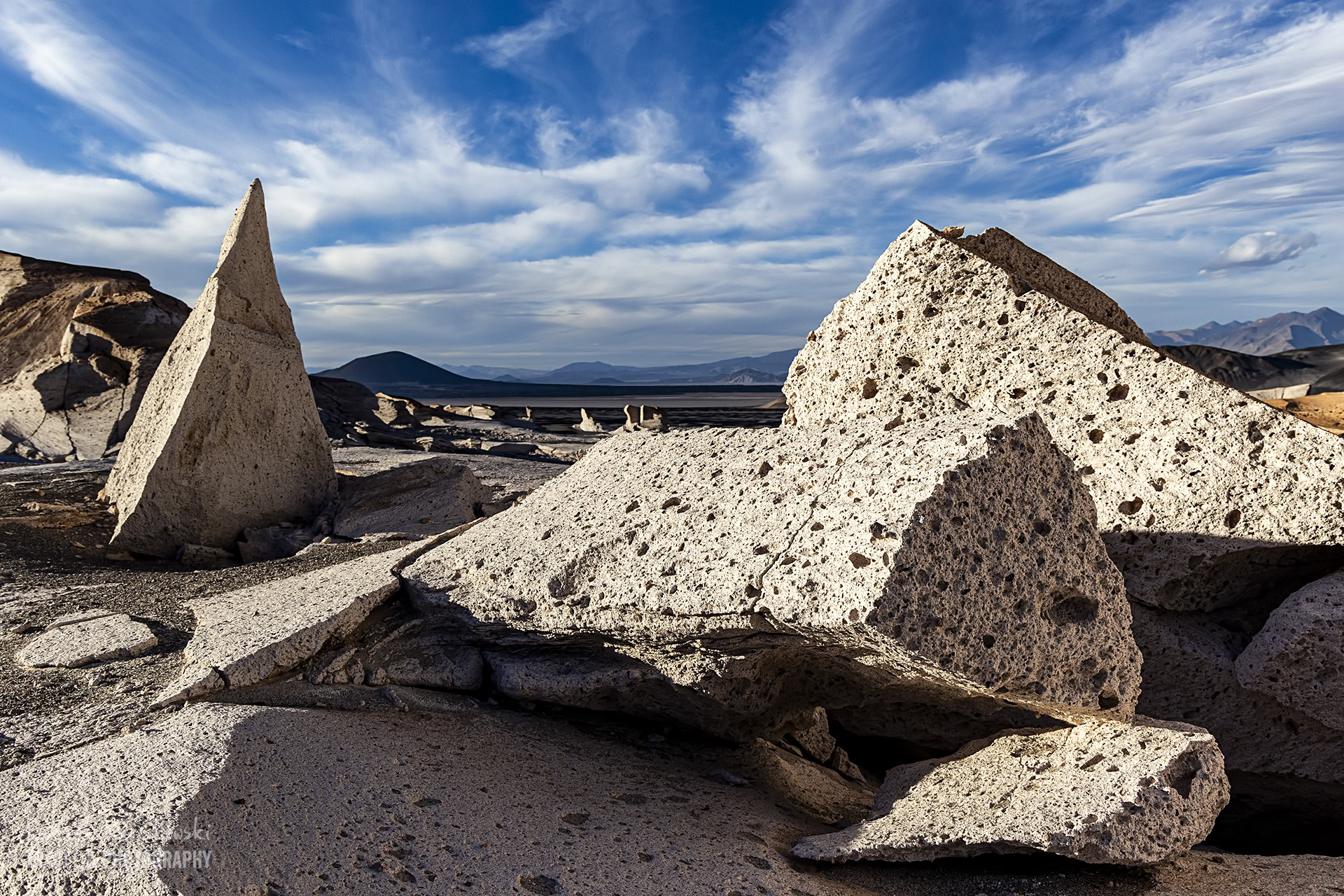 Najbliższa wioska (dosłownie kilka domów, to El Peñón. Od niej do pola pumeksów jest ok. godzinna droga. Bez 4×4 nawet się nie zapuszczajcie. Droga wiedzie po piasku, łatwo się zakopać, szczególnie gdy jest silny wiatr i piasek się przesypuje przez koleiny. Kilka razy musieliśmy uciekać z drogi, aby się przedrzeć. Można też jechać dookoła przez Lagunę Carachi Pampa. Też trzeba mieć 4×4, ale nie ma już piasku. Jedzie się prawie cały czas po skale wulkanicznej. Widoki na obu drogach są obłędne.