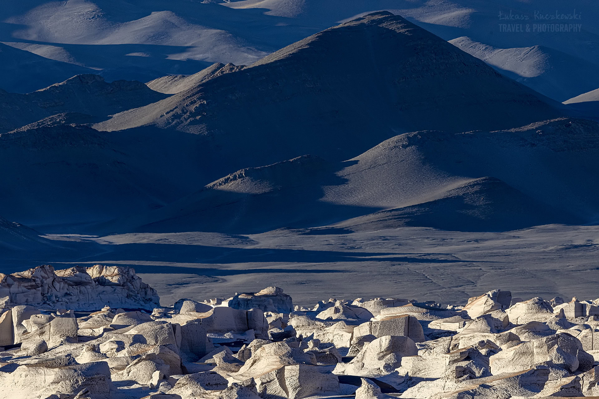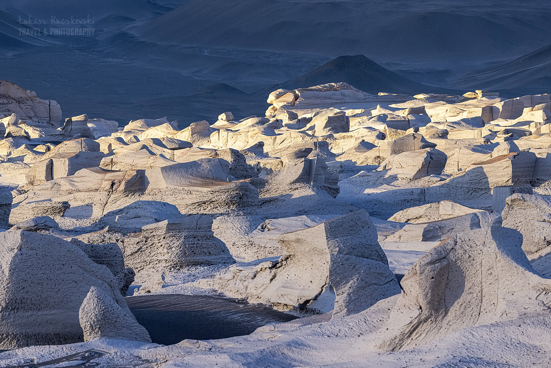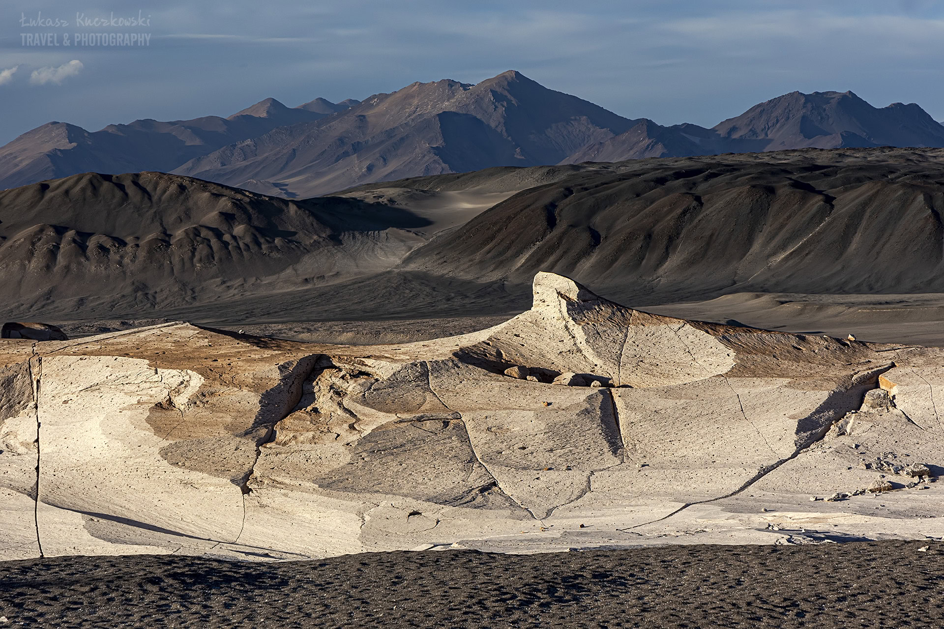 Chcieliśmy być jak najbliżej tego miejsca, aby uniknąć przedzierania się przez piaszczystą drogą z odległej wioski. Dlatego spaliśmy w namiocie nieopodal stróżówki strażników (zamkniętej) przy samym pumeksowym polu. Ściany budynku dawały nam jako taką osłonę przed wiatrem, ale jak to w takich miejscach bywa, wiatr potrafił wiać z każdego kierunku naraz. Ale dzięki temu mieliśmy wspaniałe widoki na pumeks i okoliczne wulkany oraz wydmy. Było warto, choć po tych trzech dniach byliśmy nieziemsko zmęczeni i rozbici przez wiatr. Swoje robiła też wysokość i bardzo szybka aklimatyzacja – w jeden dzień z 0 na 3800 m n.p.m.