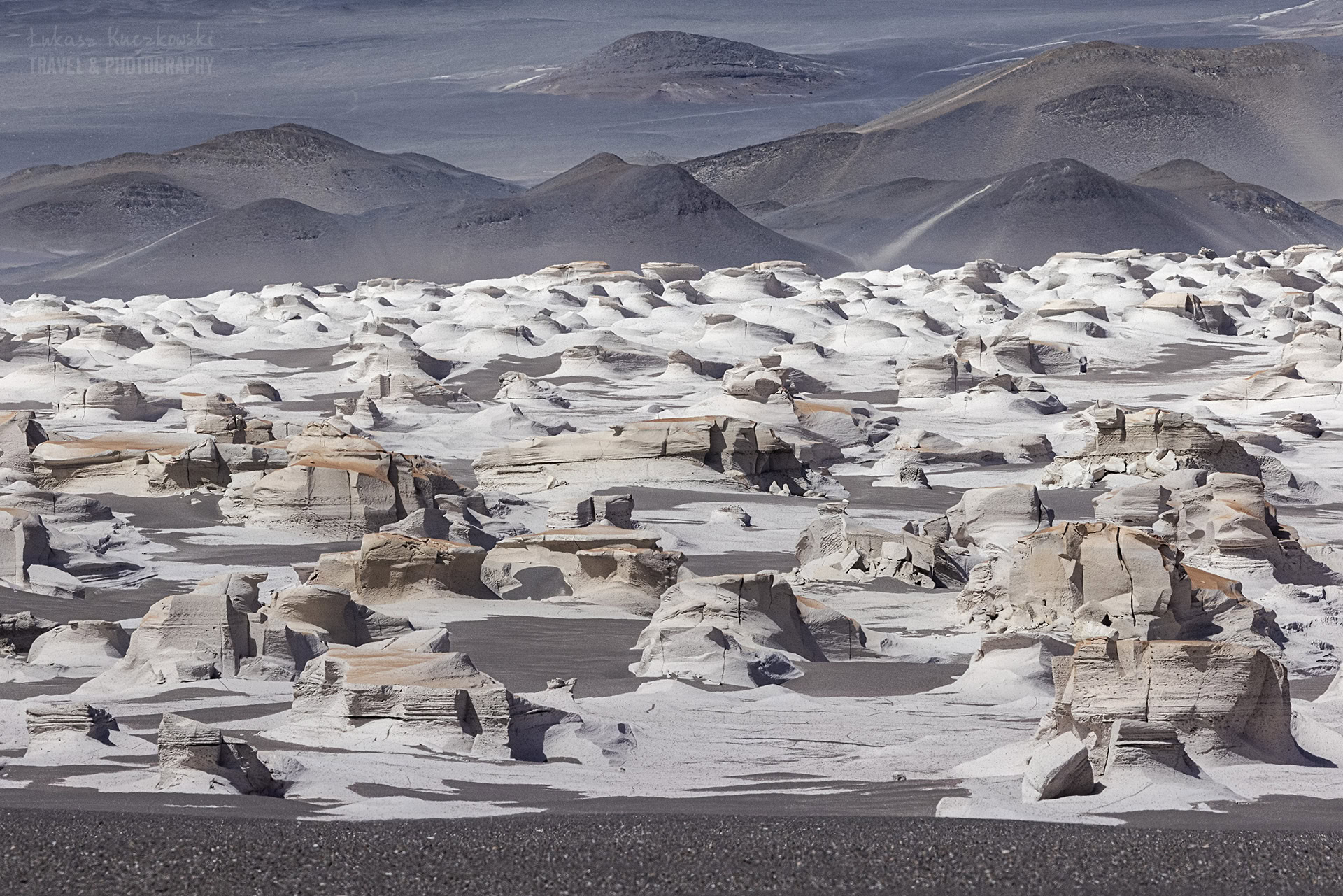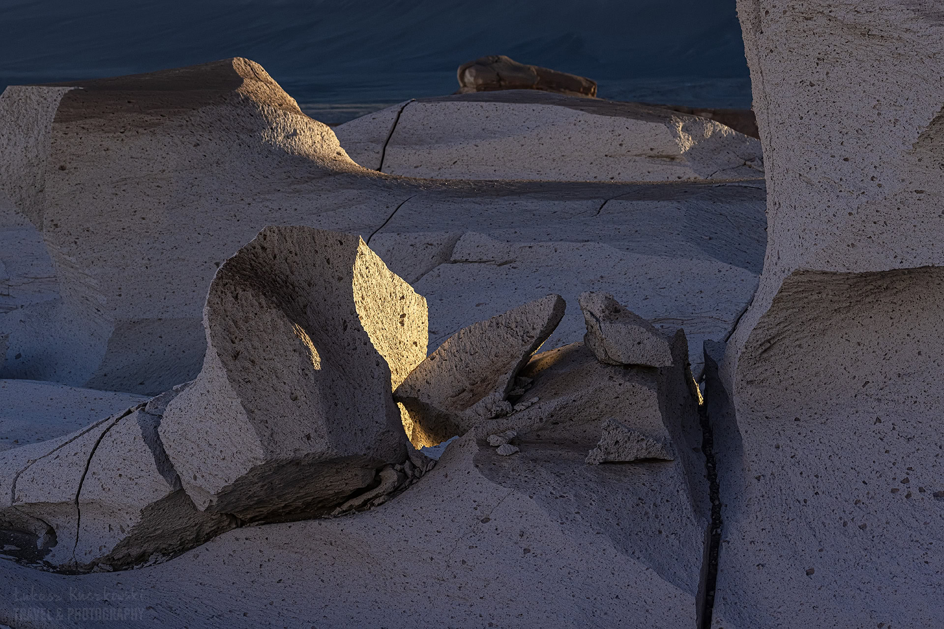To miejsce wymaga czasu. Trzeba się z nimi oswoić, bo zawrót głowy od kadrów i form jest obezwładniający. Każda cześć pola jest inna – czasami pumeks jest bardzo blisko siebie i jedne kształty i formy łączą się z innymi, a czasami między skałami jest mnóstwo czarnego piasku, który wiatr układa w linie i wzory. Im więcej czasu spędzicie na tym polu, tym lepiej.