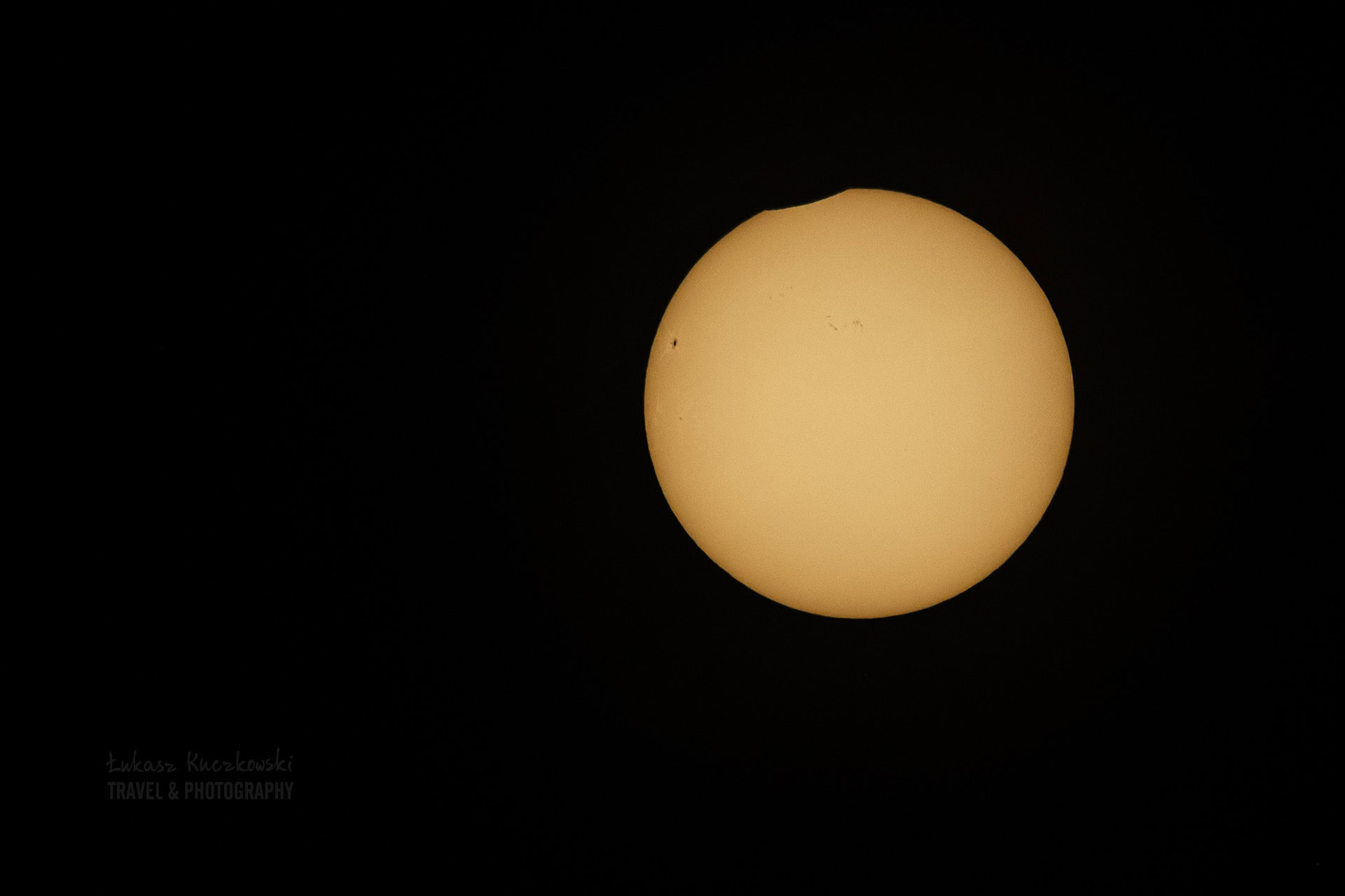 Miałem nadzieję, że dużą liczbę plam słonecznych, które dodałyby obserwacjom smaczku. W końcu słońce jest w maximum aktywności słonecznej i często na powierzchni Słońca można obserwować liczne plamy. Tym razem jednak Słońce rozczarowało. Widoczne były nieliczne plamy i to na brzegach Słońca.