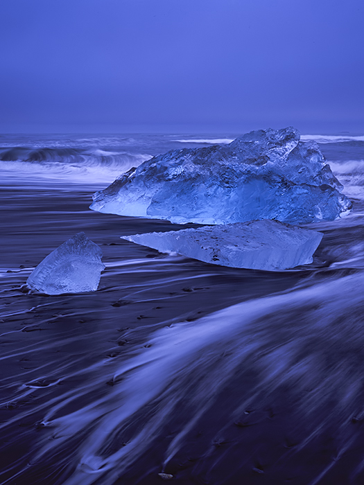 Poniżej – jedno ze zdjęć wykonanych na czarnych plażach laguny Jokulsarlon aparatem Mamiya 6MF – na slajdzie oczywiście :-).