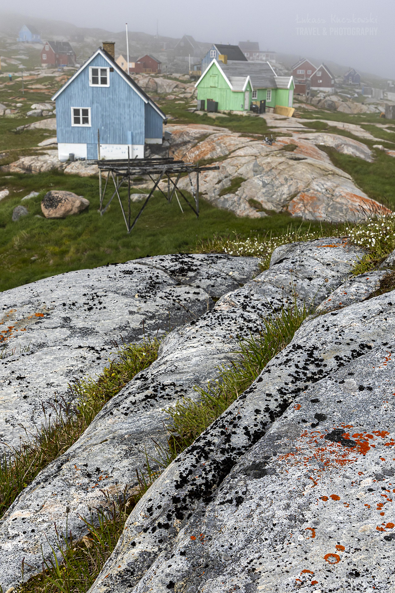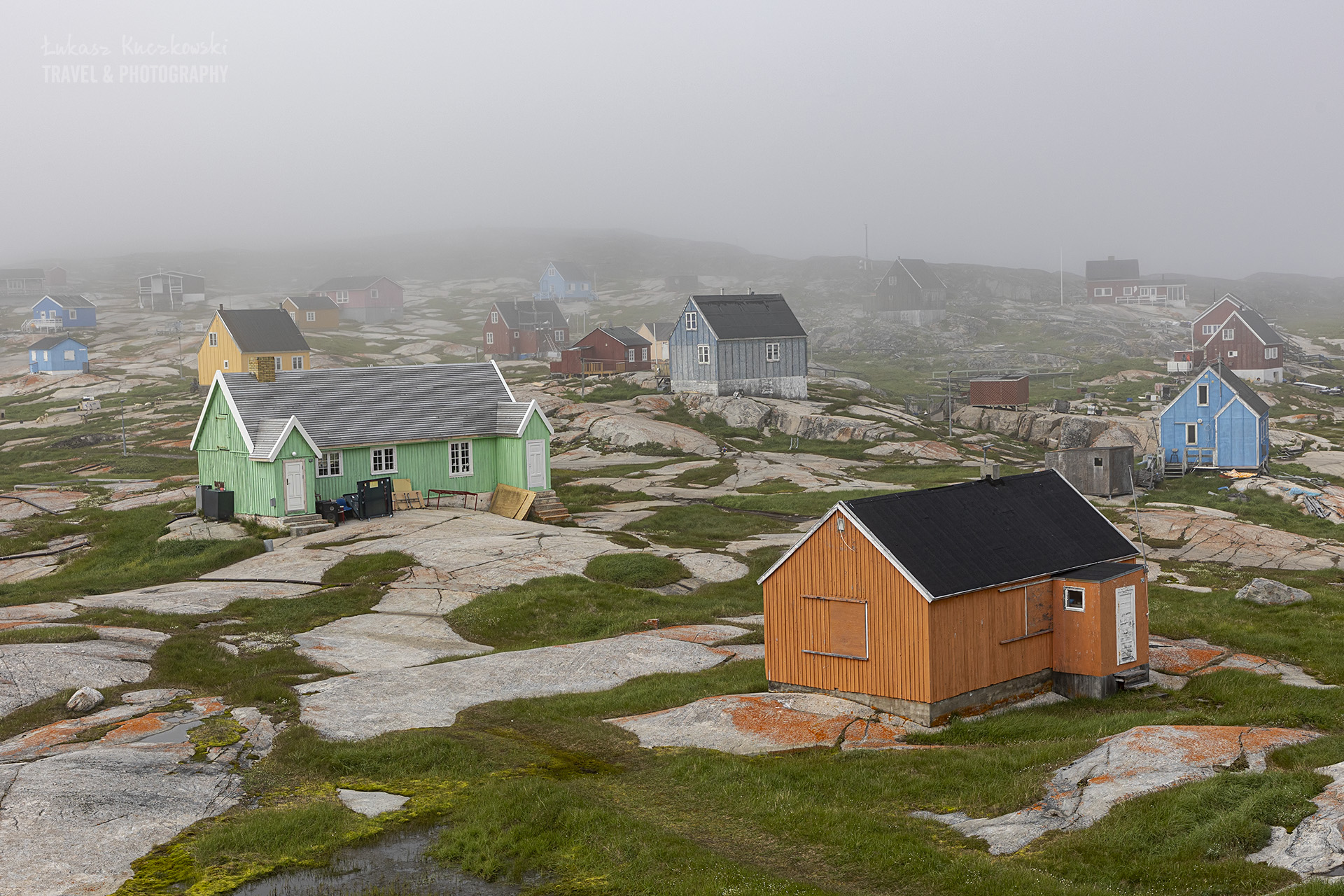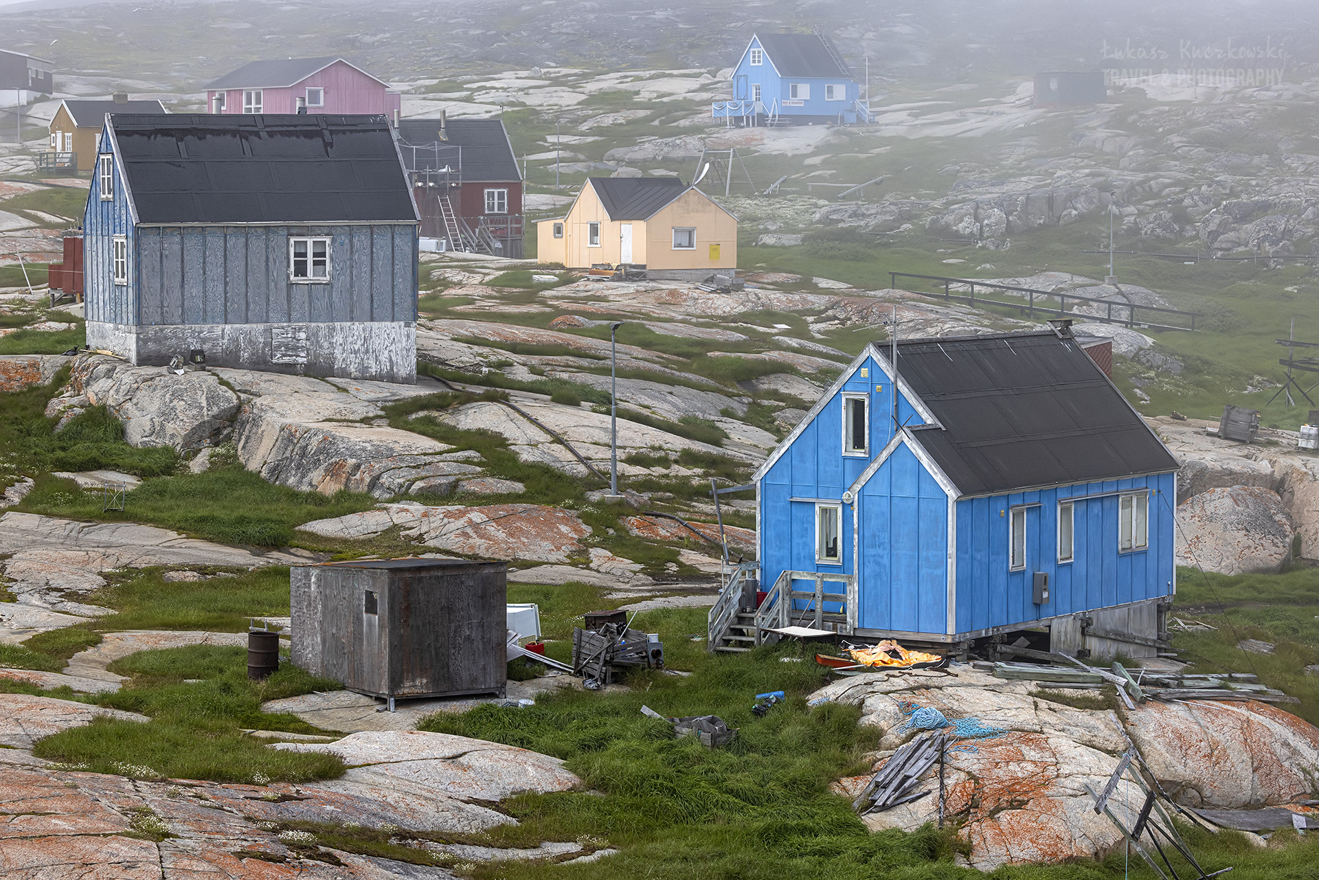 Nasz rajd trwał około pół godziny. Kolejne spędziłem na fotografowaniu wioski z różnych kierunków. Grenlandzkie wioski są mocno fotogeniczne głównie ze względu na kolorowe poszycia domów. Gdy jednak przyjrzymy się bliżej, to wokół najczęściej jest niezły bałagan. Aż się prosi jakiś porządek.