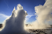Syk i gejzer znowu się wznosi. Słychać tylko trzask migawek. Tu się liczy łut szczęścia. Aparaty są zatem ustawiona na manual i serie zdjęć. Bawimy się tak przez dobrą godzinę. Światło nadal jest ciekawe.