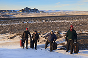 Na razie się tym jednak nie przejmujemy. Przyjmujemy kolejny gorący posiłek, słuchamy muzyki i trochę śpimy. Dla każdego coś miłego. Później jeszcze mała sesja fotograficzna z walizkami. Musimy komicznie wyglądać dla przejeżdżających od czasu do czasu samochodów. Czwórka facetów siedząca w mrozie na walizkach pośrodku niczego, pałaszująca coś z garnuszków i kubków. Takie właśnie chwile uwielbiam w fotografii.