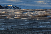 Jest coraz zimniej. Docieramy na małą przełęcz. Stąd już widać nasze jeziorko. Jest jednak coraz więcej śniegu i boimy się, że się zakopiemy. Mijające nas z rzadka samochody są o wiele bardziej przystosowane do panujących tutaj warunków. Temperatura na dworze w słoneczny dzień – minus 8 stopni. Na szczęście nie wieje zbyt mocno. Postanawiamy zawrócić. Zatrzymujemy się kilkaset metrów dalej, skąd mamy fantastyczny widok na góry, rzekę i nadmorską równinę. Poczekamy tutaj na noc. Niestety od oceanu zaczynają napływać chmury. Wygląda na to, że nim nastanie noc pokryją niebo w całości. Prognoza pogody też nie jest zachęcająca.
