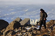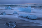 Szybko zwinęliśmy namiot. Jeszcze herbatka z rana, aby się trochę ogrzać i ruszyliśmy na plażę. Buty suche. Tym razem byliśmy bardzo wygodni i podjechaliśmy samochodem pod samą plaże po drugiej stronie ujścia kanału. Gór lodowych było od zatrzęsienia. Dużych i małych. Zatopiliśmy się w ten niesamowity świat. Początkowo zdjęcia znowu nie idą. W takim miejscu trzeba jednak złapać swój własny rytm. Rozdzielamy się i każdy tworzy sam. Fale znów całkiem duże – trzeba uważać.