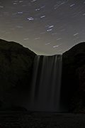 Pomimo zmęczenia dwugodzinna droga przebiegła nam nad wyraz szybko i sprawnie. Nie ma to jednak jak dwóch kierowców. Do wodospadu docieramy już mocno po zmroku. Nad nami niebo iskrzyło się tysiącem gwiazd. Zaparkowaliśmy przy drewnianym domku i udaliśmy się pod wodospad. Już z daleko słychać było szum opadającej wody. Ale wodospadu nie było cały czas widać. Dopiero gdy zbliżyliśmy się jeszcze bardziej, poczuliśmy wodę rozpyloną w powietrzu. W oddali coś tam białego majaczyło. Cofnęliśmy się i zaczęliśmy robić zdjęcia. A raczej próbować je robić. Po przeszło godzinie lekko zmarznięci wróciliśmy do samochodu. Na niebie nadal świeciły gwiazdy, ale zorzy nie było widać.
