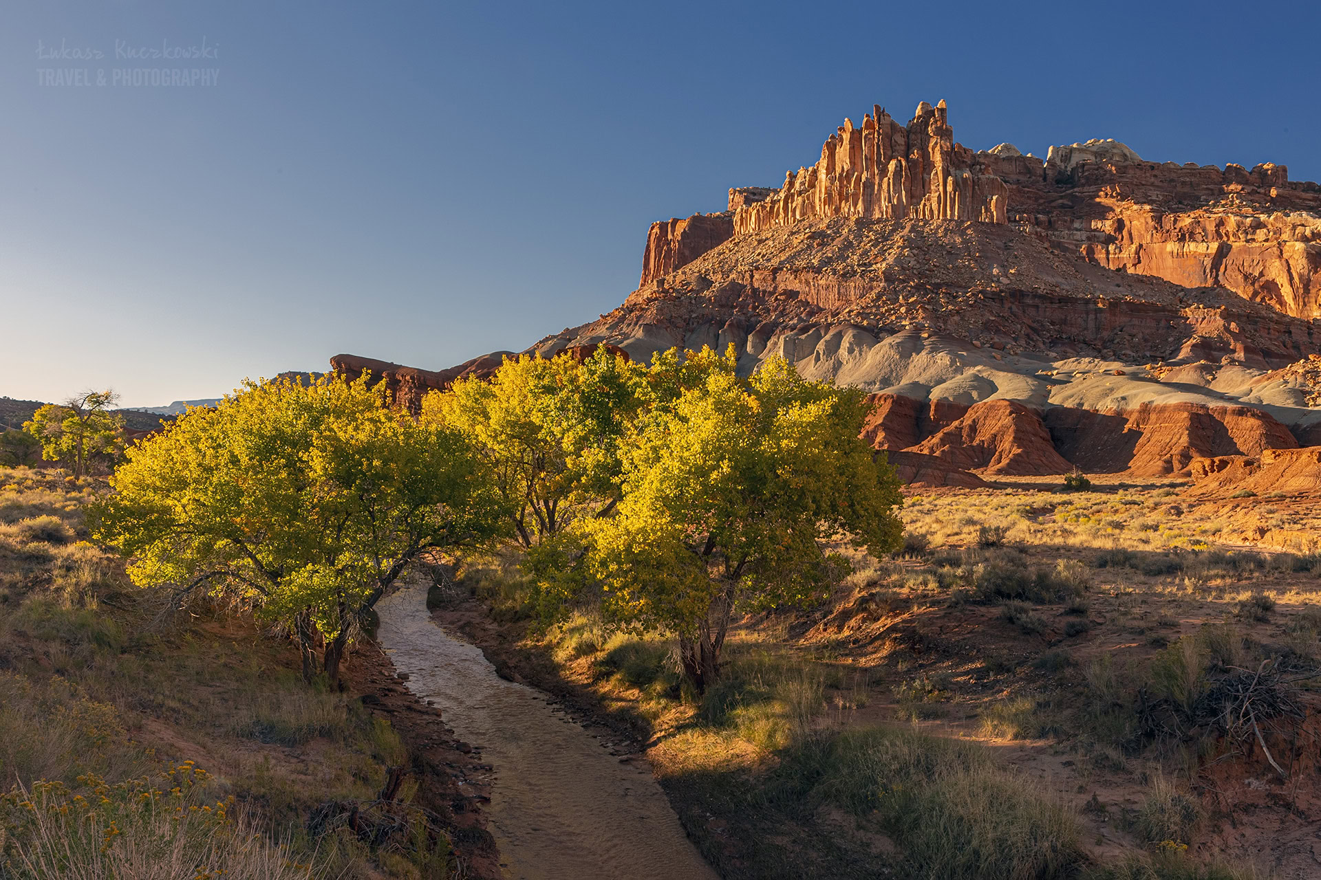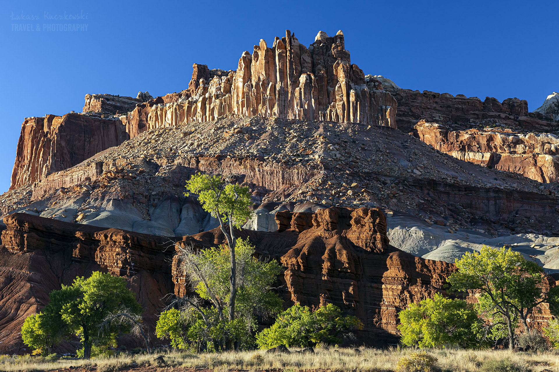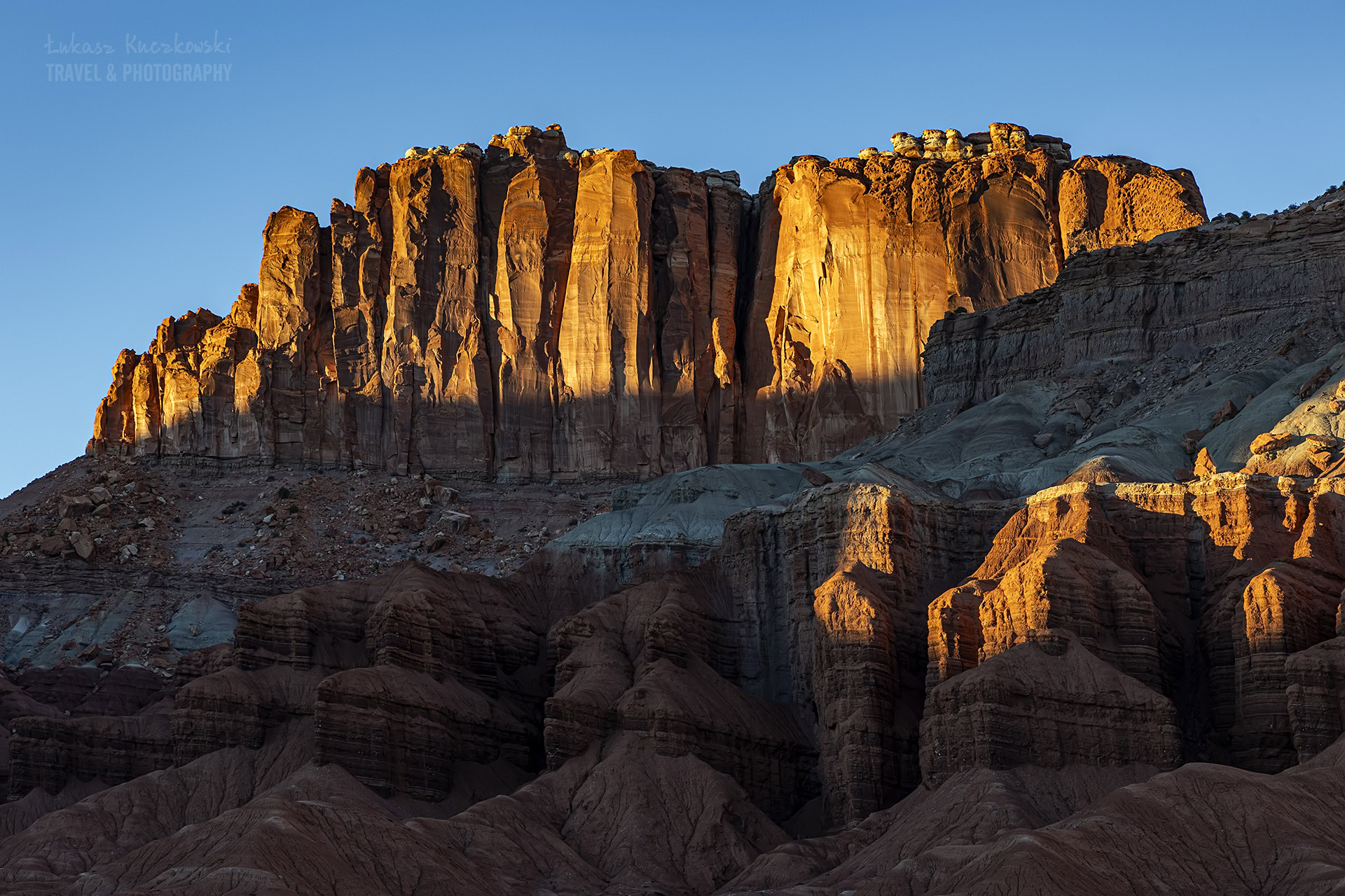 Niedaleko centrum Parku Narodowego Capitol reef znajduje się ściana skalna zwana Flutted Wall. Na polski przetłumaczymy to jako Ryflowana Ściana i takie też robi wrażenie. Jest łatwo dostępna z głównej drogi przecinającej park, a wrażenie robi szczególnie o zachodzie słońca, kiedy to potrafi zostać zjawiskowo oświetlona przez promienie zachodzącego Słońca.