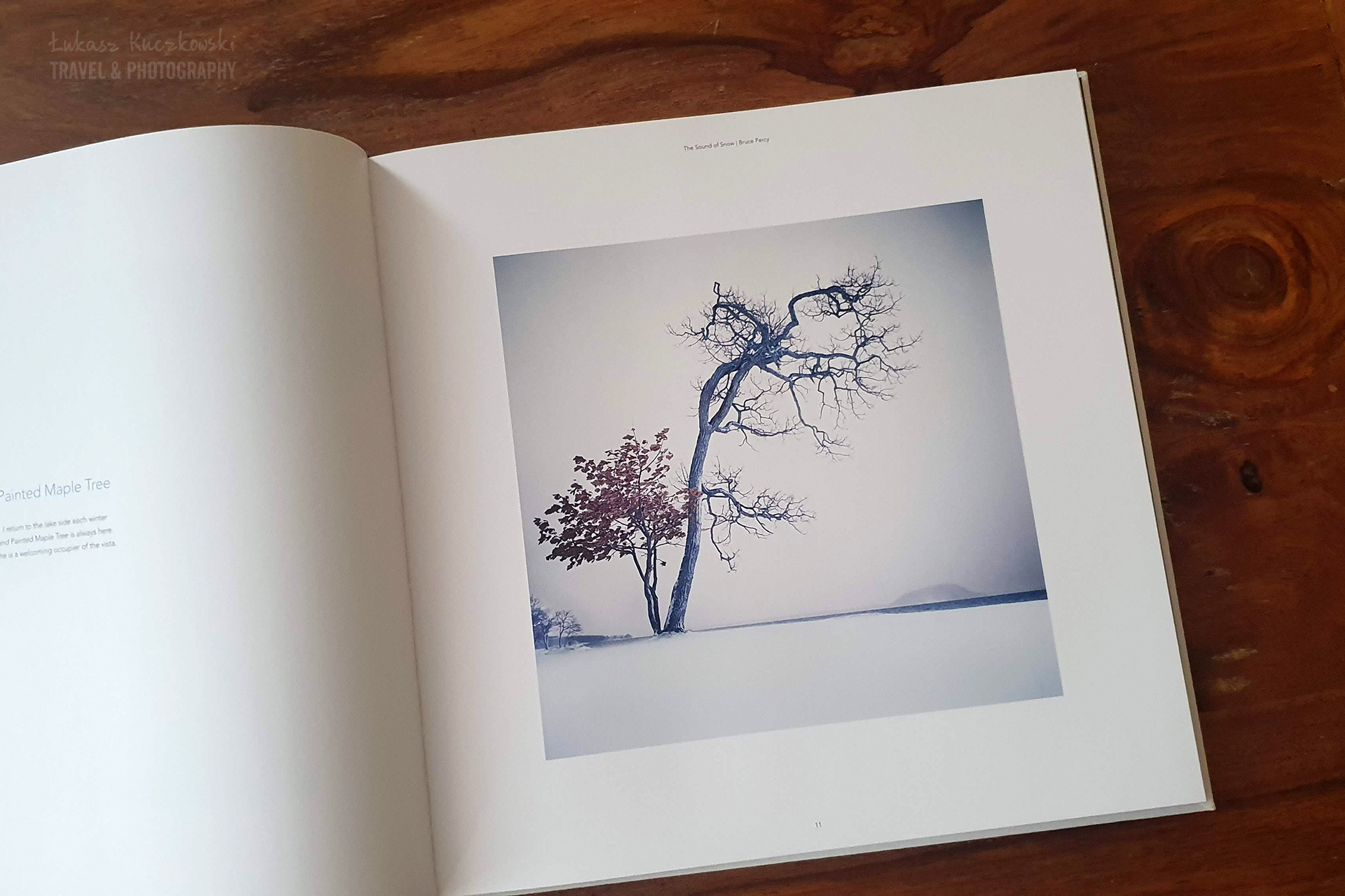 Album nie jest zdjęciowym przekrojem kraju kwitnącej wiśni. Raczej prezentuje wycinek tego ciekawego kraju, i to bardzo wąski. I tu leży w mojej ocenie problem z tym albumem. Bruce przyzwyczai mnie już do bardzo dobrych album, nie tylko pod względem ich wykonania, ale przede wszystkich pod kątem prezentowanych zdjęć. Ich różnorodność była zawsze mocnym punktem każdego albumowego podsumowania. Niestety tej różnorodności zabrakło. Nie wiem czy to wyraz fascynacji Kenną, czy może próba pozyskania środków w trudnym dla fotografów pandemicznym okresie. A może po prostu zabrakło zdjęć, które taką różnorodność by zapewniły. W każdym bądź razie na wielu zdjęciach widzimy różnego rodzaju, raczej jednak monotematyczne, wariacje na temat pojedynczych drzew w japońskim krajobrazie i w różnym układzie kadru. Przy czym, gdyby nie tytuł i posłowie, to można by odnieść wrażenie, że zdjęcia powstały gdziekolwiek, gdzie pada śnieg i występują drzewa. Zdjęcia są do tego bardzo oszczędne w wyrazie. To daje oczywiście duże pole do interpretacji dla oglądającego, jak również dla fotografującego, ale po kilku podobnych zdjęciach robi się po prostu nużące. Oczywiście jest to forma zabawy Bruca z obrazem, ale mi osobiście nie przypadła ona do gustu na łamach albumu. Myślę, że blog jest lepszym miejscem do takiej zabawy.