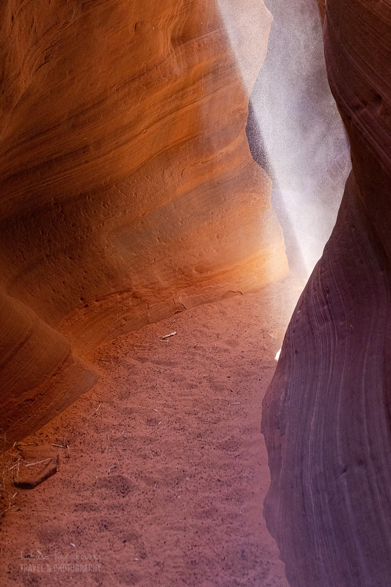 W Upper Antelope Canyon też nie można używać statywów ani nie można zabierać plecaków. Nastawcie się na wysokie ISO i dużą szybkość fotografowania :-)