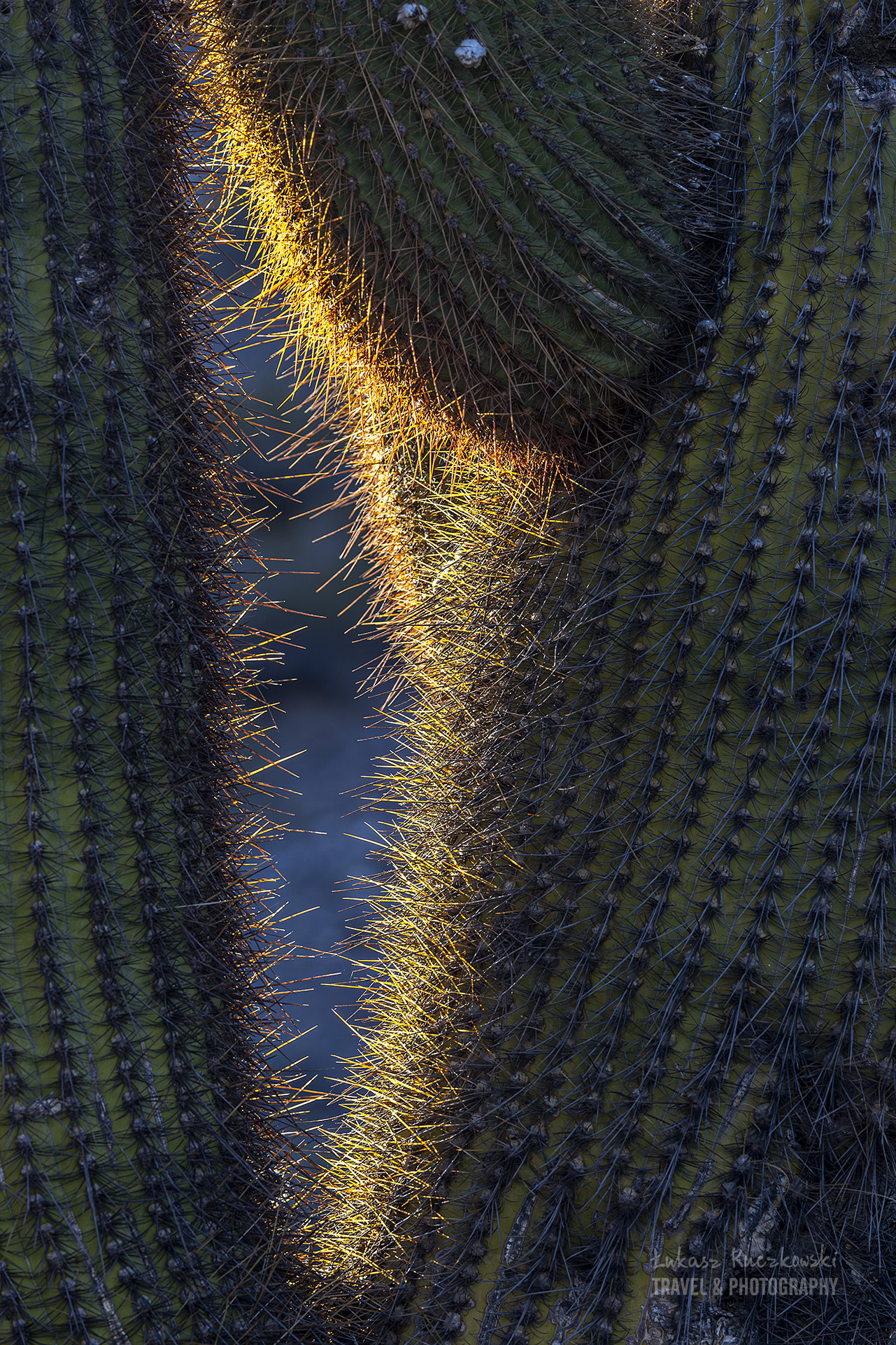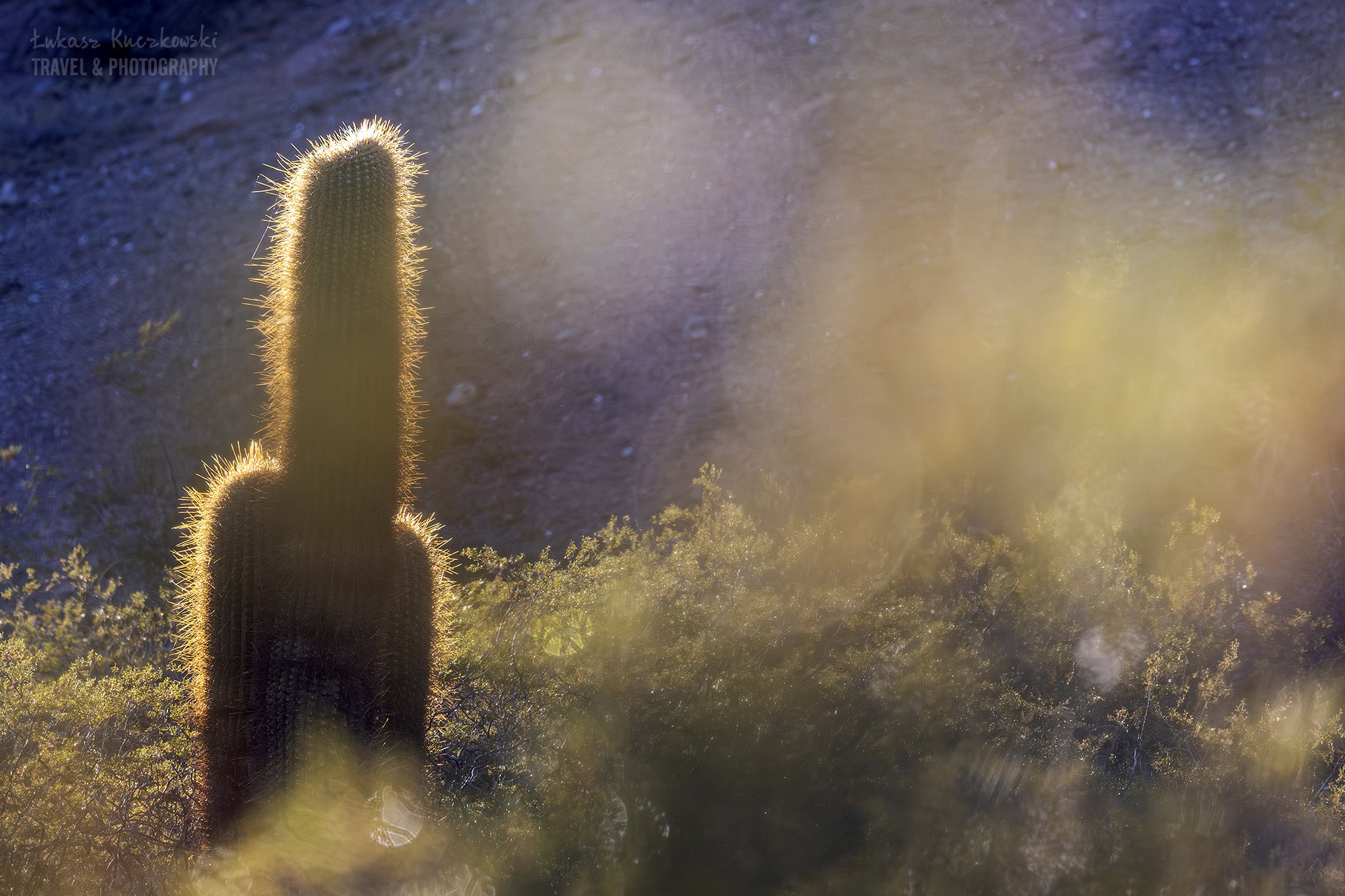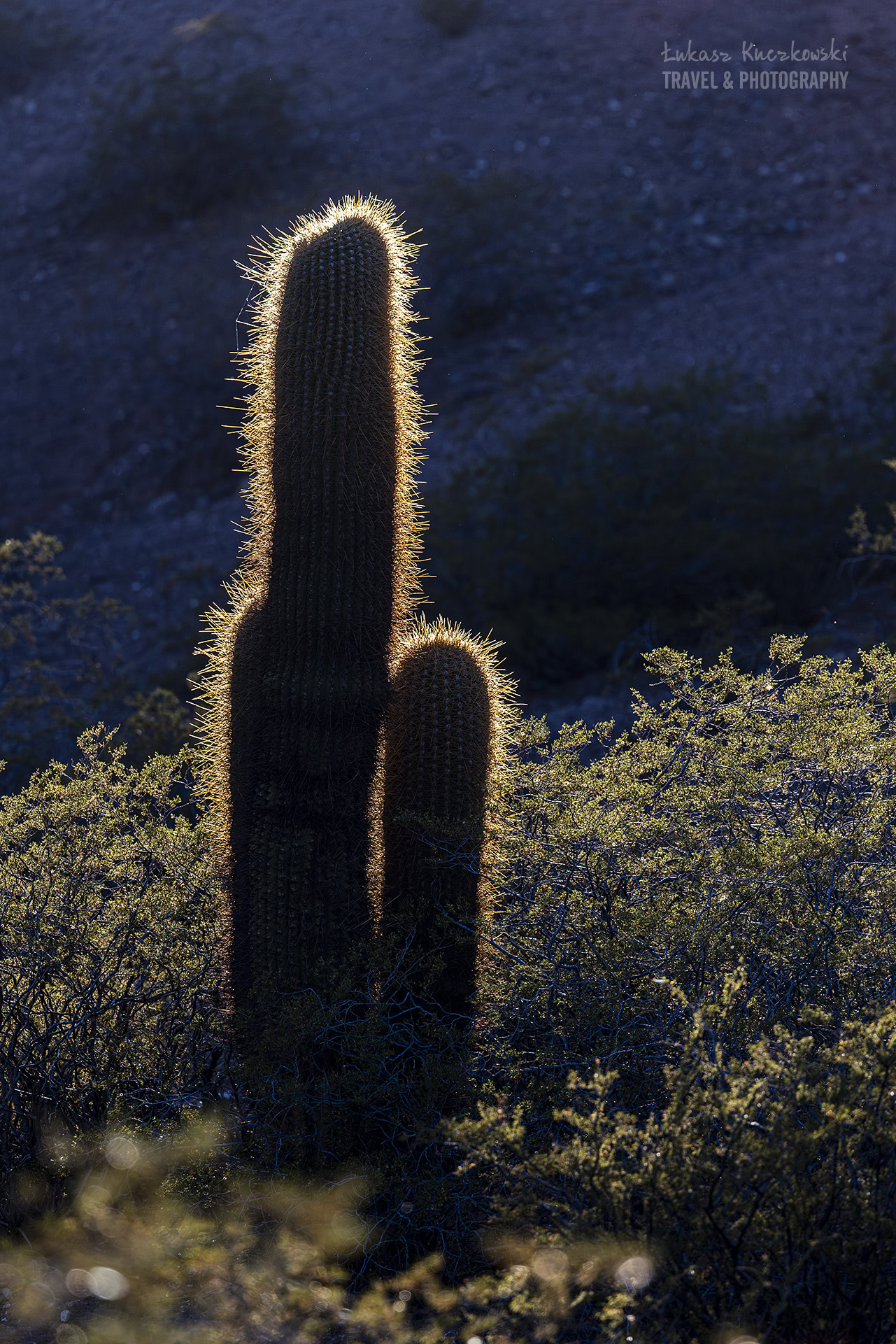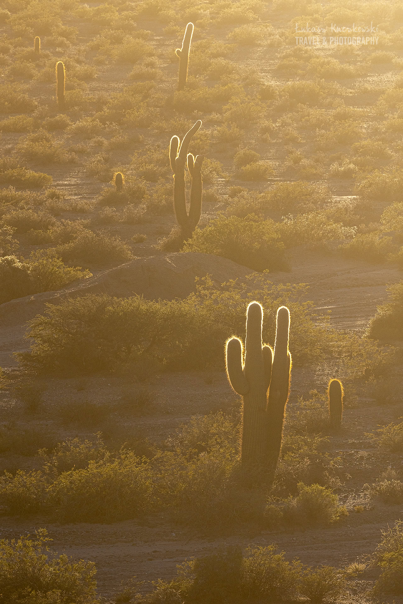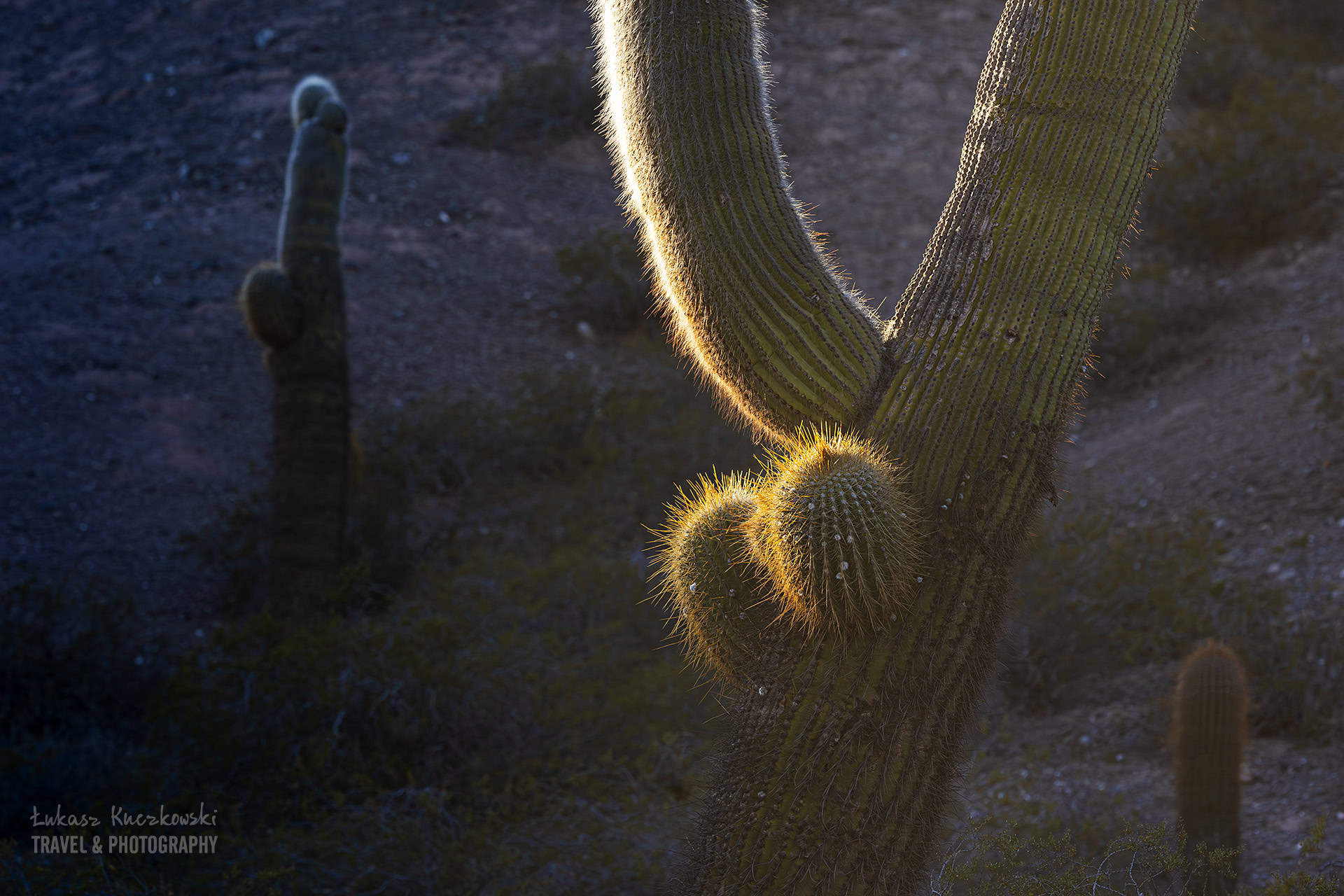 W parku spędziliśmy dwa dni. Byliśmy praktycznie sami – nie spotkaliśmy żadnego człowieka. Najbardziej interesowały nas wschody i zachody słońca. W planach były też nocne zdjęcia nieba z kaktusami na pierwszym planie. Ale … zrezygnowaliśmy. Mając trochę czasu przed zachodem słońca wybraliśmy się na krótki trekking jedną z tras. Na szczęście dla nas, zaczęliśmy od zapoznania się z tablicami informacyjnymi. A te ostrzegało o … pumach, które żyją w tym rejonie. Antek miał wizję jak puma skacze mi na plecy podczas nocnych zdjęć. Jako że realnie ryzyko było, odpuściliśmy nocne zdjęcia.
