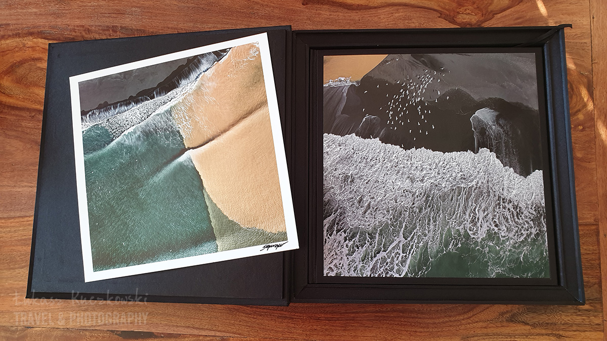Po pierwsze – rozmiary. Jest to typowy album typu coffe book. Nie nadaje się do trzymania w rękach – trzeba go po prostu położyć na stole i w ten sposób kontemplować, najlepiej z kubkiem dobrej kawy. Sam album ma rozmiary 35×35 cm. Oczywiście jest w grubej oprawie, a dodatkowym zabezpieczeniem jest potężne grube pudełko. Jest to wersja kolekcjonerska – dodatkiem jest zatem podpisany przez autora wydruk jednego ze zdjęć prezentowanych w albumie.