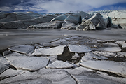Wreszcie światło powoli staje się już za ostre, szczególnie w połączeniu z białym lodem. Dołączam do Marcina, który siedzi na brzegu. Kontemplujemy obrazy.